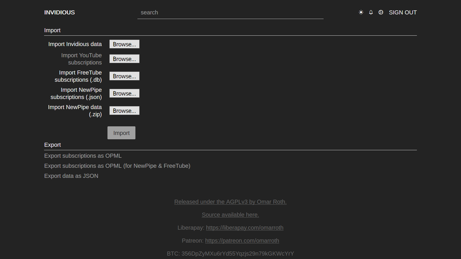 • Import/Export subscriptions, watch history, preferences